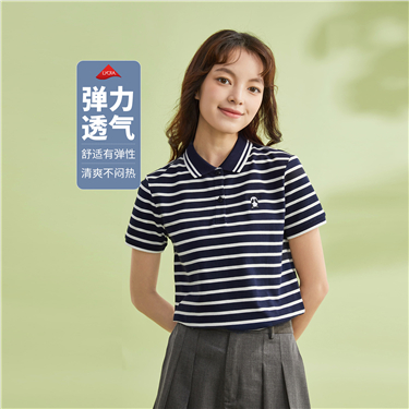 100% Cotton crewneck 3/4 sleeve stripe tee