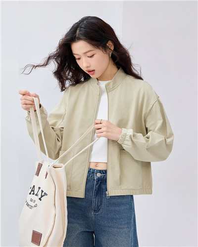 100% Cotton stand collar short sweat jacket