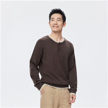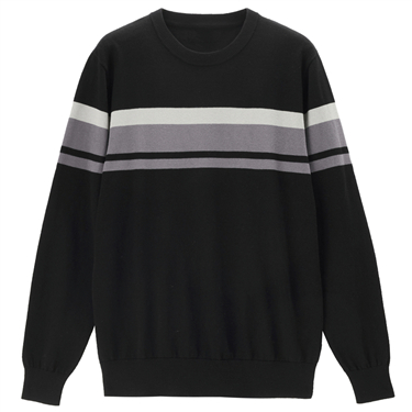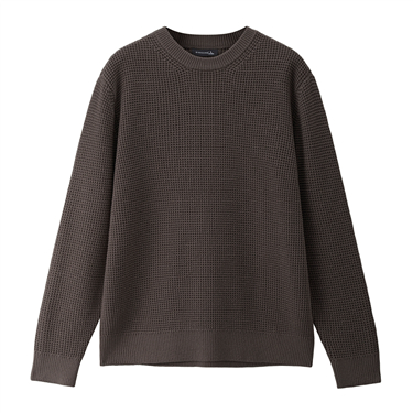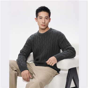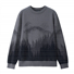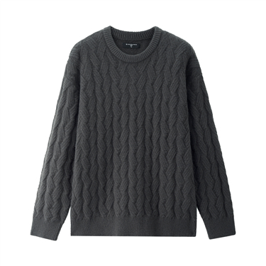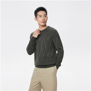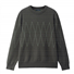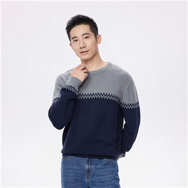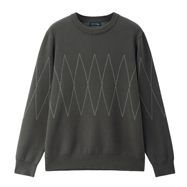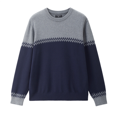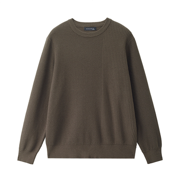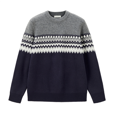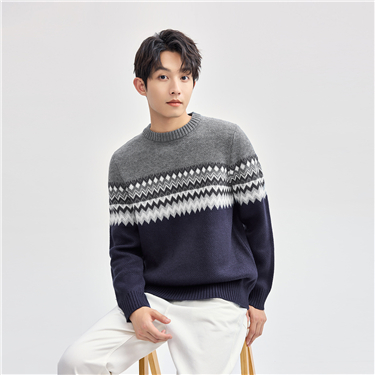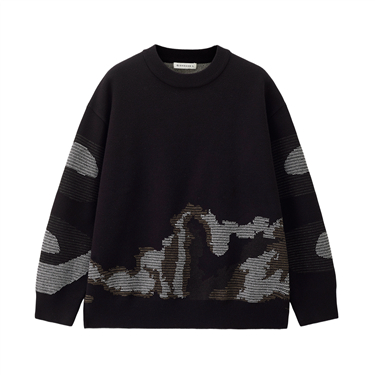 Loose Knitted Pullover with Crew Neck & Contrast Camouflage Jacquard