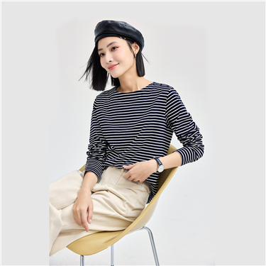 【Online Exclusive】Women's Plain color v-neck long sleeve tee