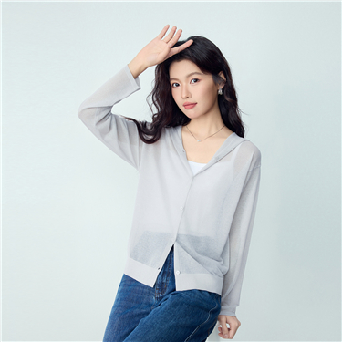Semi-sheer loose hooded cardigan