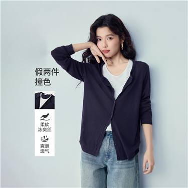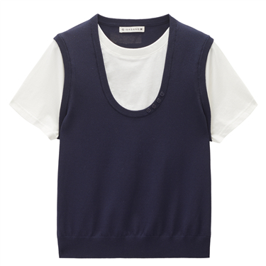 Fake 2-piece crewneck slim sweater