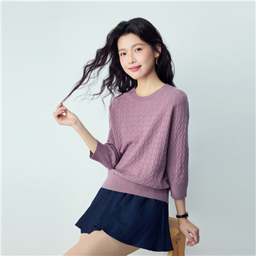 Cable knit 3/4 raglan sleeve sweater