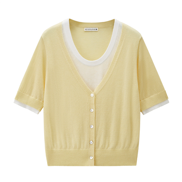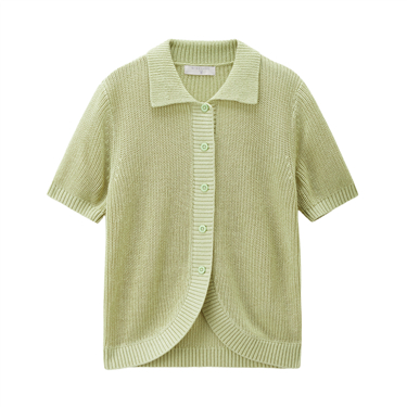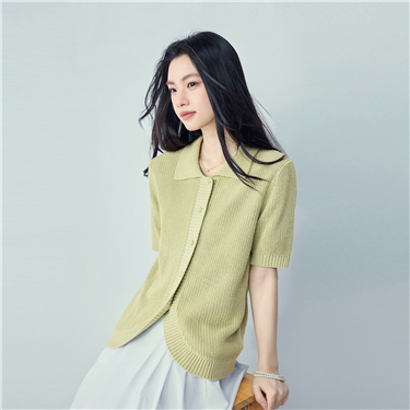 Lapel collar short sleeve cardigan