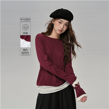 Fake 2-piece boat neck sweater