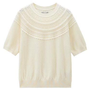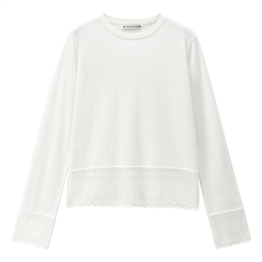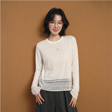 Lace trim crewneck sweater
