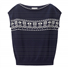 Jacquard fringe trim round neck sweater