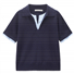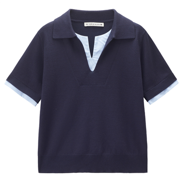 Embroidery contrast collar half placket sweater