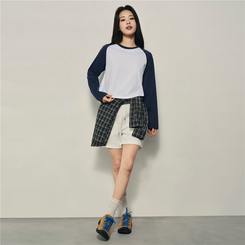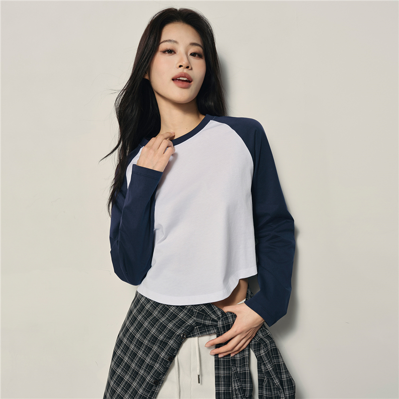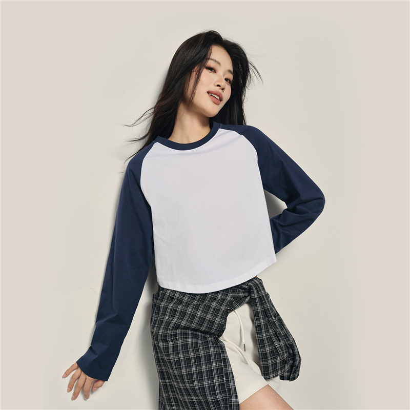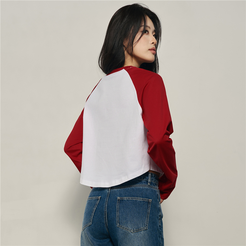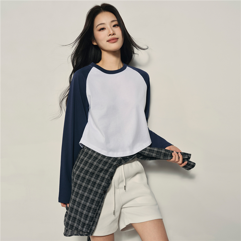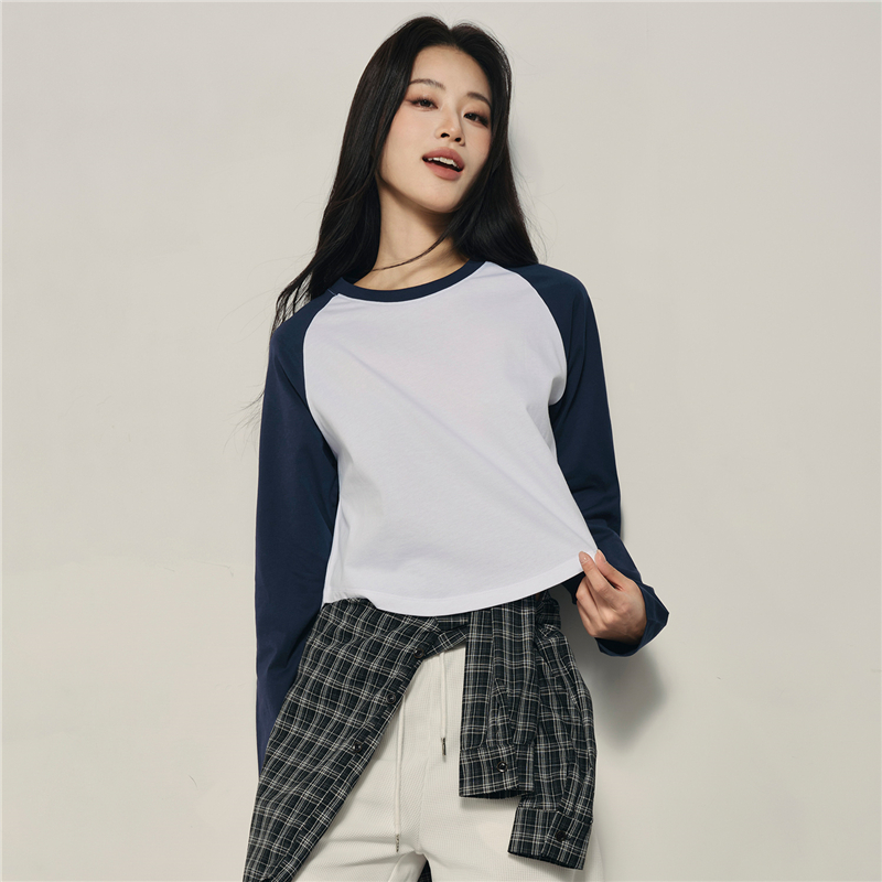 【Korea Collection】Women's Contrast Raglan Long Sleeve Tee