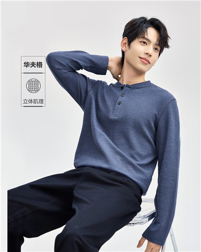 Henley neck long sleeve waffle tee