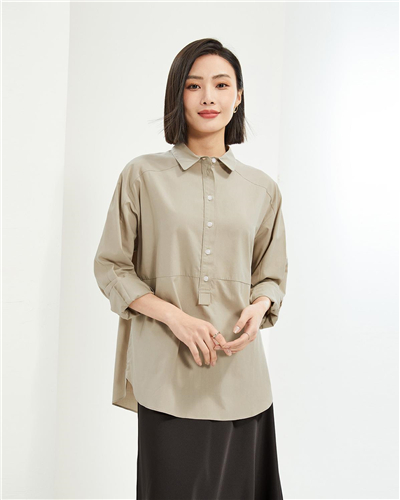 Modal poplin half placket long sleeve loose shirt