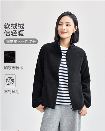 Polar fleece stand collar kanga pockets jacket