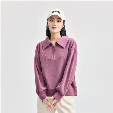 Polar Fleece Turndown Collar Half-Zip Knitted Sweatshirt