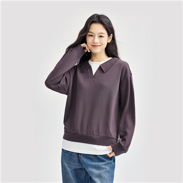 Fake Two-Piece Contrast V-Neck Knitted Sweatshirt