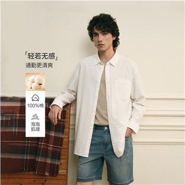 Single pocket long sleeve brushed cotton shirt