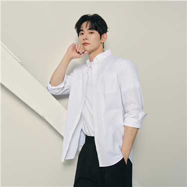 Cotton oxford single pocket long sleeve shirt
