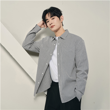 【 Korea Collection 】Men's Cotton Striped Pocket Long Sleeved Shirt