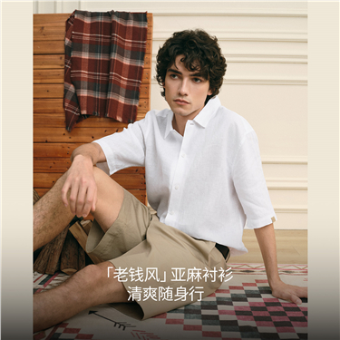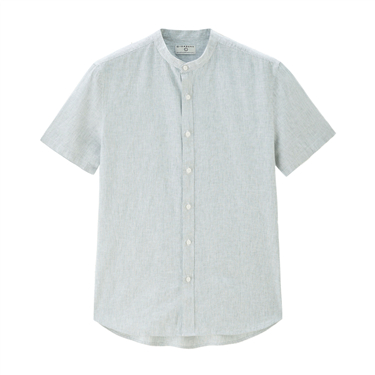 Linen cotton mandarin collar short sleeve shirt