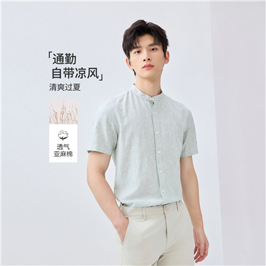 Linen cotton stand collar short sleeve shirt