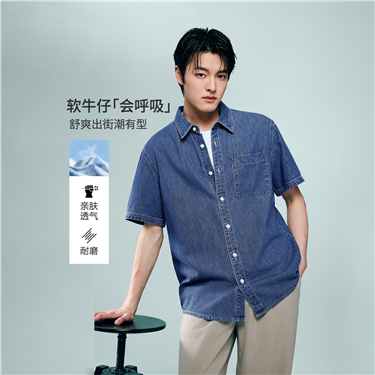 Single pocket short sleeve denim shirt