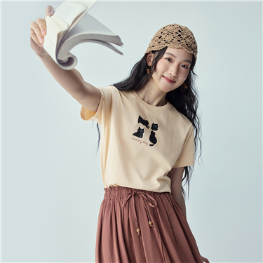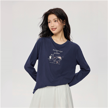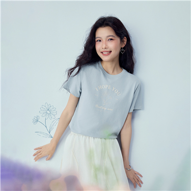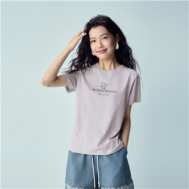 Women’s Mid Sleeve Loose Printed Cotton Jersey Tee