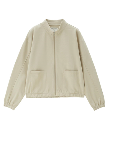 【Online Exclusive】Women's Cotton Stand Collar Pocket Short Knit Sweatshirt Jacket
