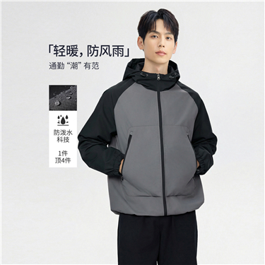 【網上獨家】男裝撞色連帽拉鏈大口袋插肩外套