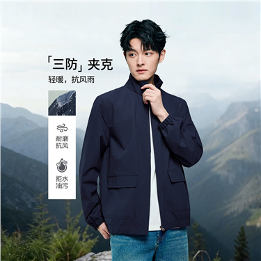 【網上獨家】BM男裝立領純色梭織風衣外套