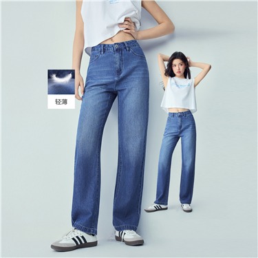 【網上獨家】女裝洗水鬆緊腰直筒薄牛仔褲