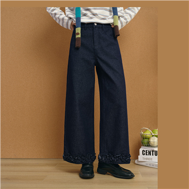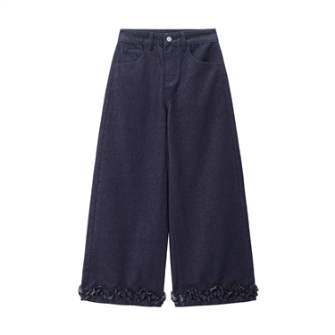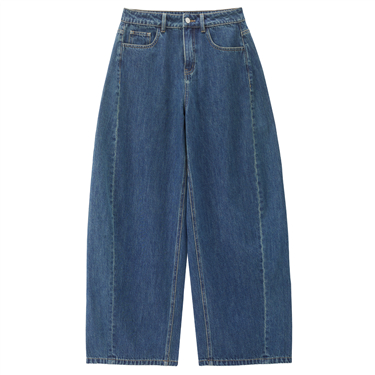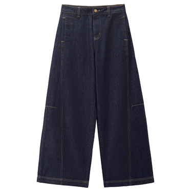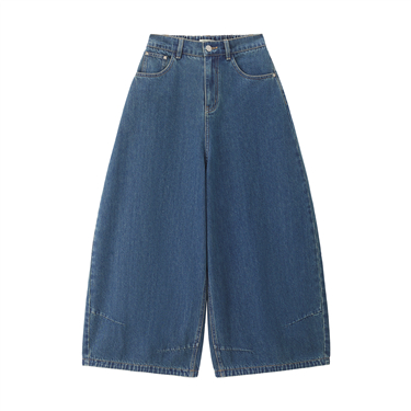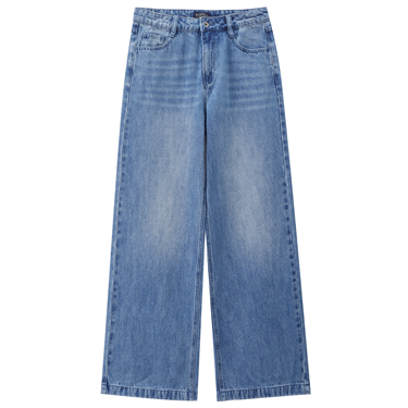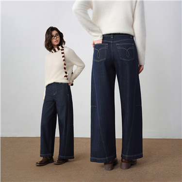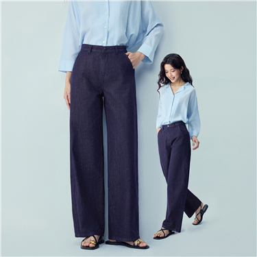 【網上獨家】女裝純棉牛仔一字口袋高腰闊腿長褲