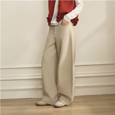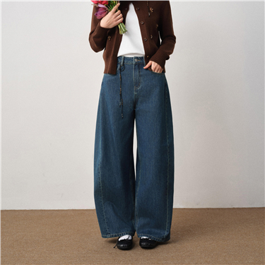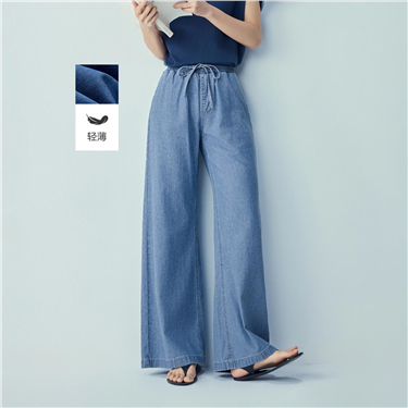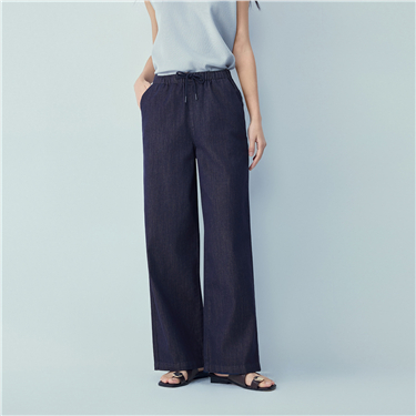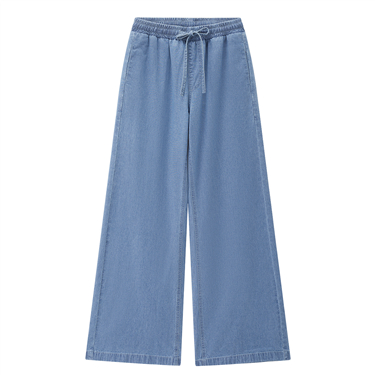 【網上獨家】女裝洗水五袋款半鬆緊腰闊腿牛仔長褲