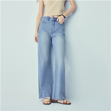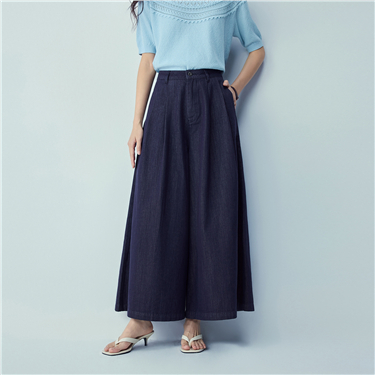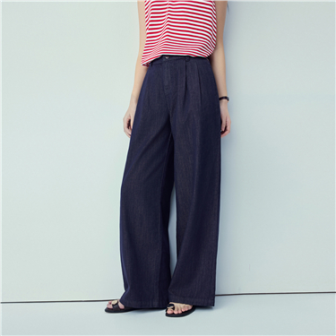 【網上獨家】女裝冰氧酷壓褶闊腿薄牛仔長褲