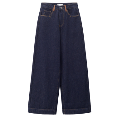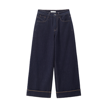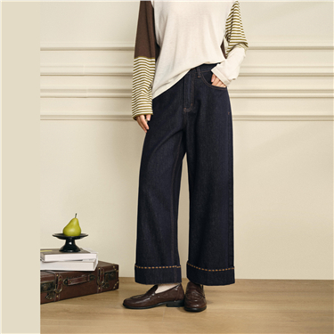 【網上獨家】女裝撞色明線高腰闊腿牛仔褲