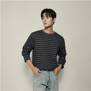 男裝Korea Collection 棉條紋圓領長袖T恤