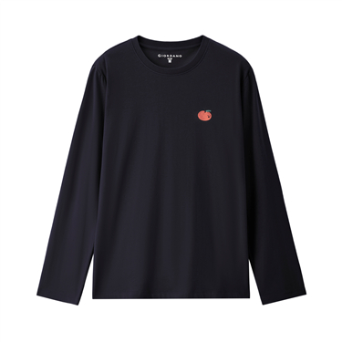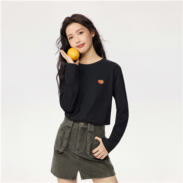 【網上獨家】 BM 女裝棉笑臉橘子刺繡圓領長袖T恤