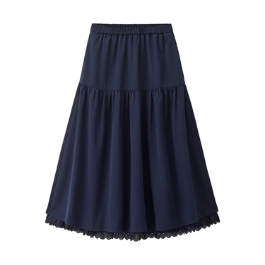【網上獨家】女裝拼接蕾絲花邊下擺鬆緊腰梭織半身裙