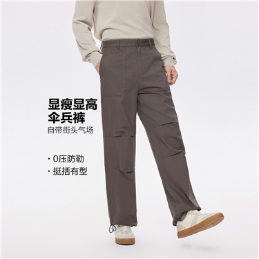 【網上獨家】男裝膝部打褶松緊腰梭織傘兵褲