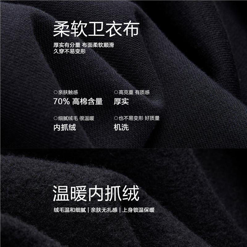 韓國同款 內抓絨面料,厚實溫暖 連帽版型,加設抽繩,休閒風十足 袋鼠兜設計,收納方便,時尚實用。