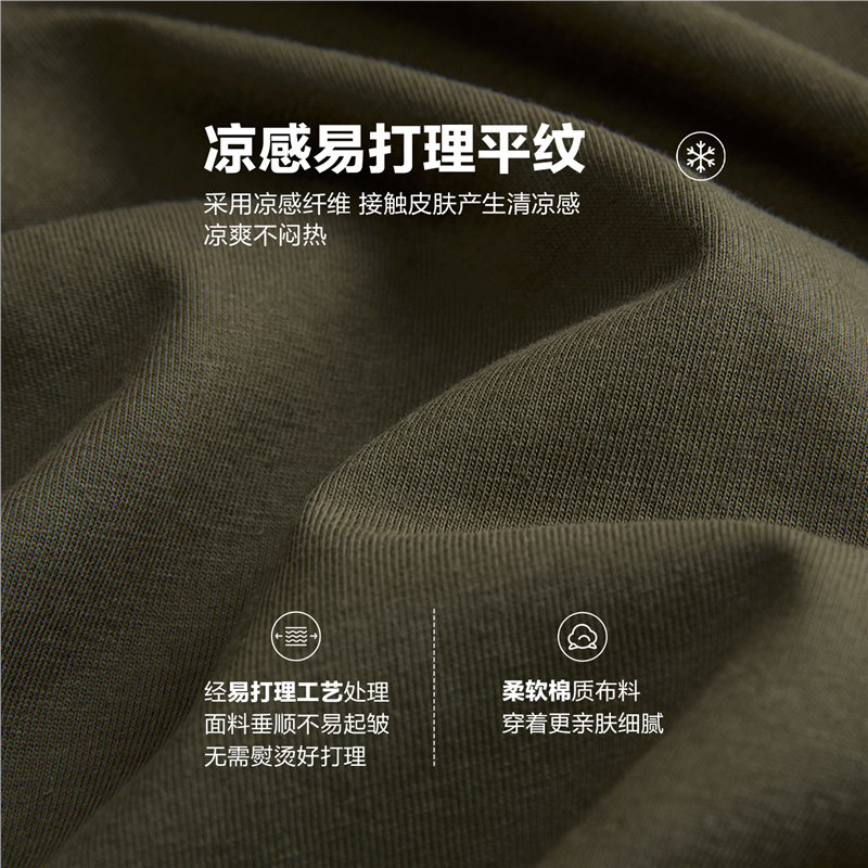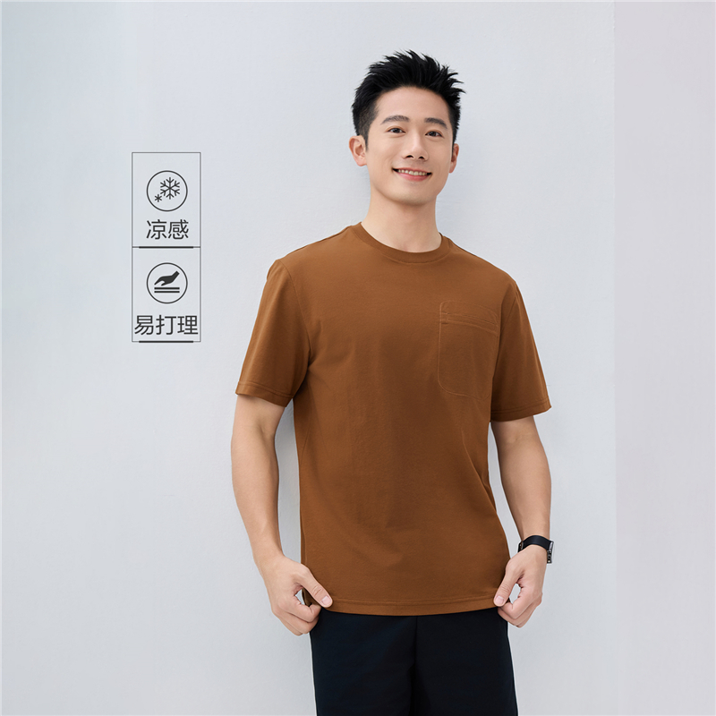 涼感面料,酷爽舒適;羅紋圓領,不易變形,易穿易搭;繡線假袋,線條流暢,個性吸睛。
