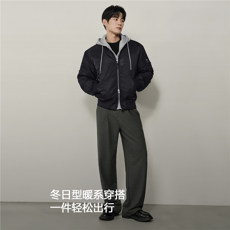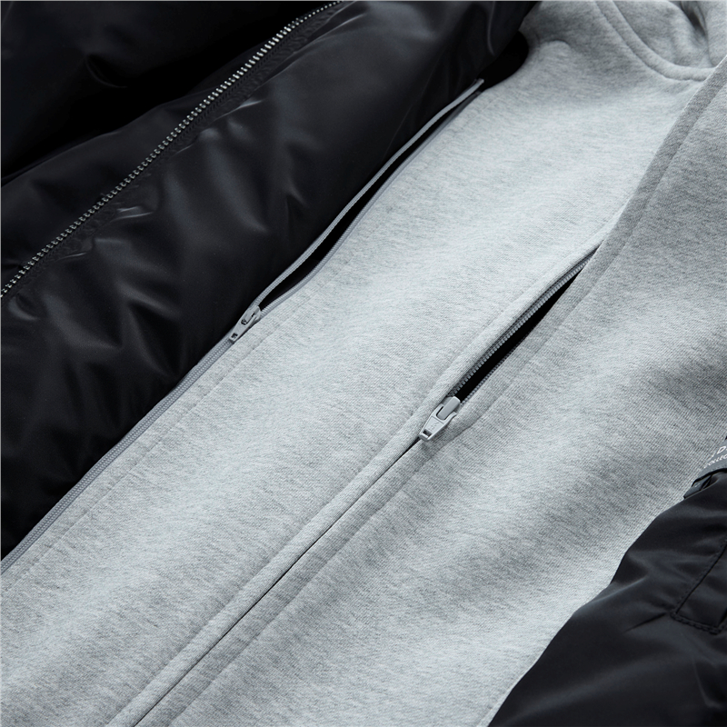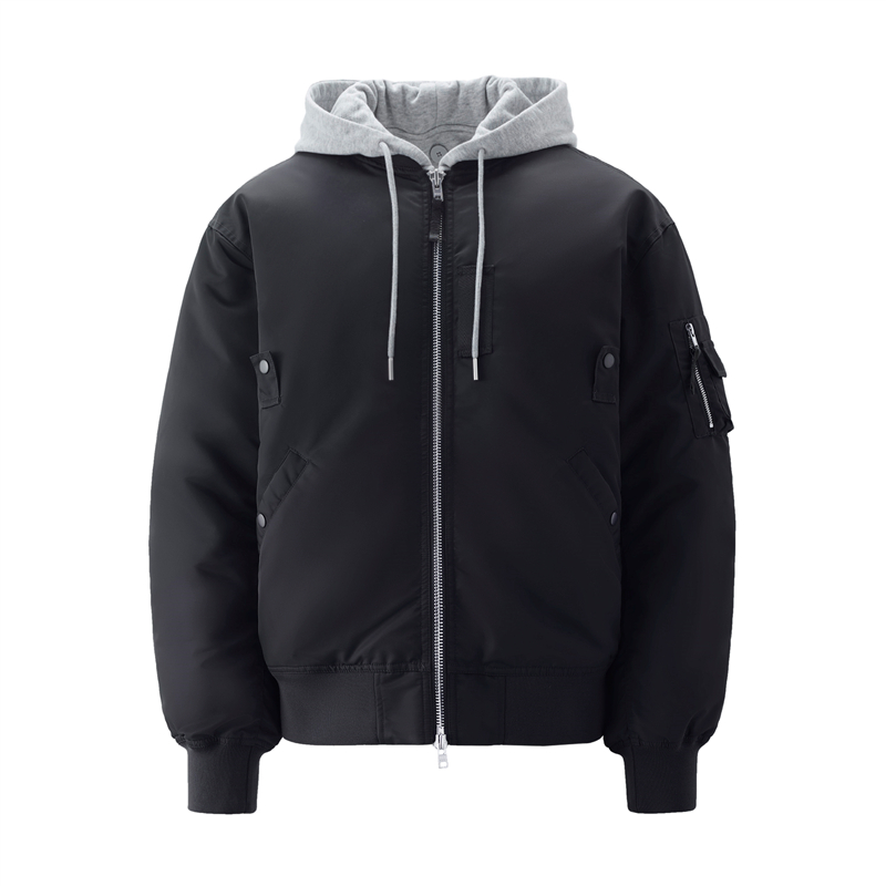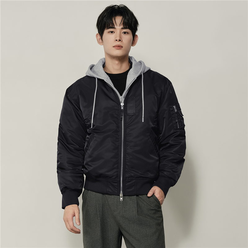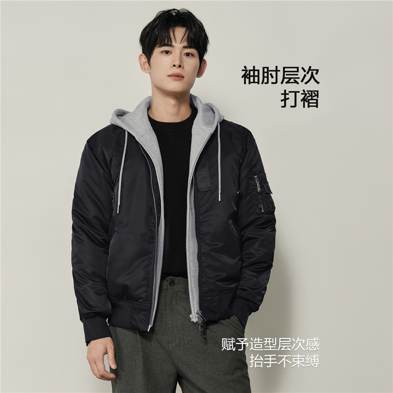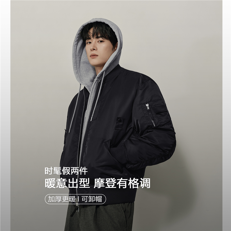 韓國同款 錦綸面料,挺括耐穿 夾棉內裏,厚實溫暖 假兩件連帽,拆卸容易,造型多變。
