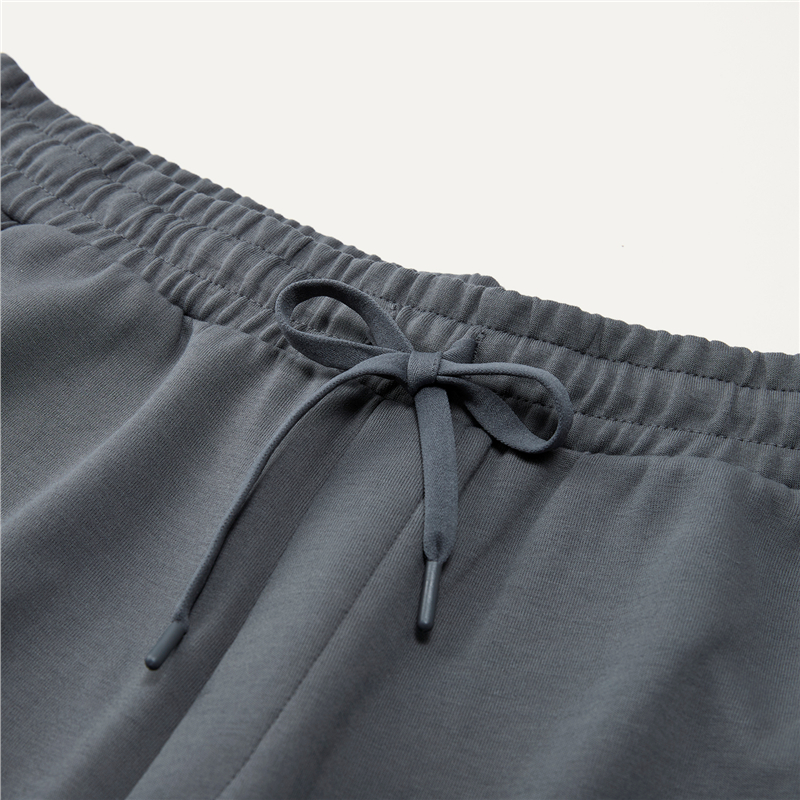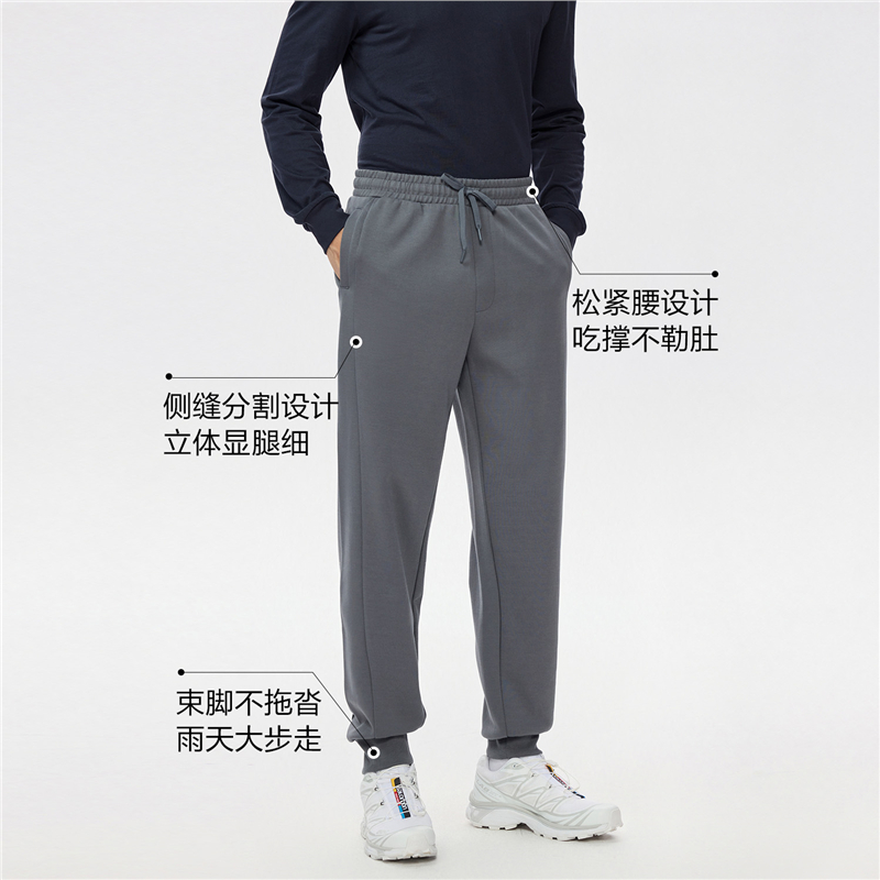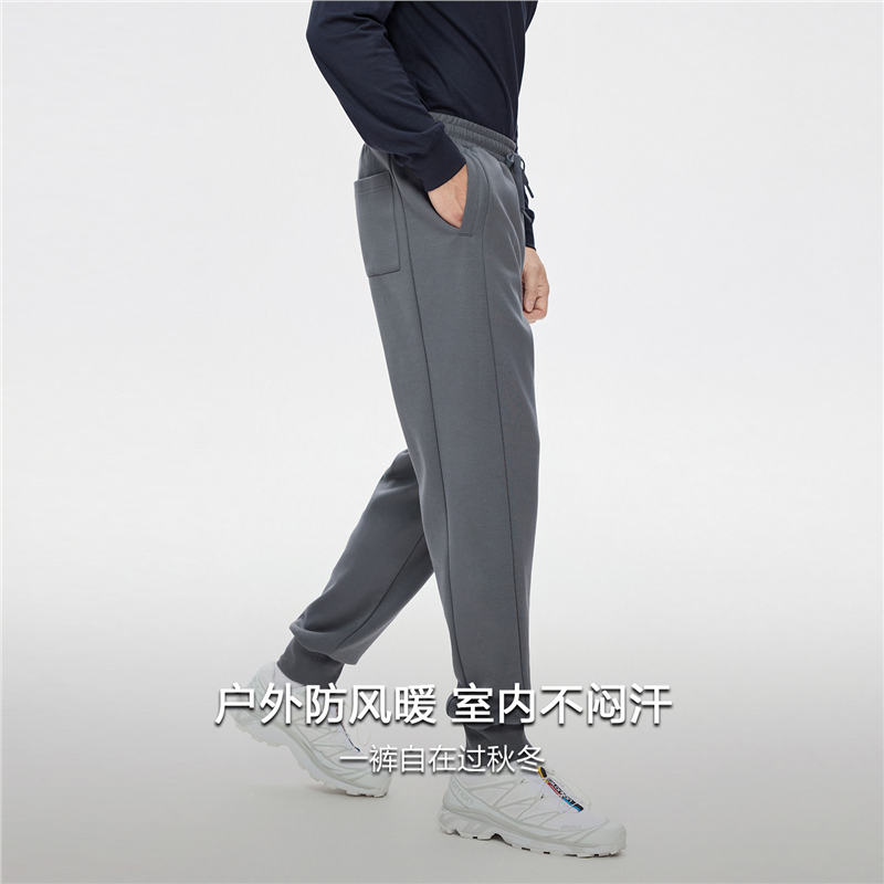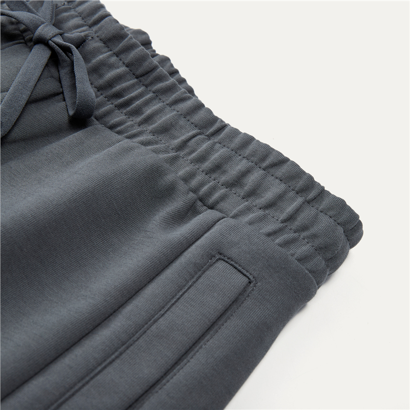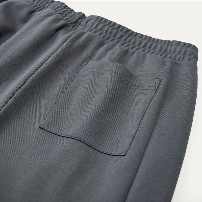 雙面布面料,挺括細膩;鬆緊腰頭,加設抽繩,舒適易穿;破骨設計,線條流暢,增添立體感。