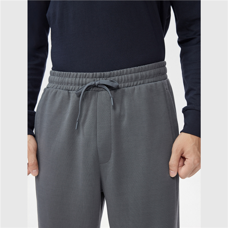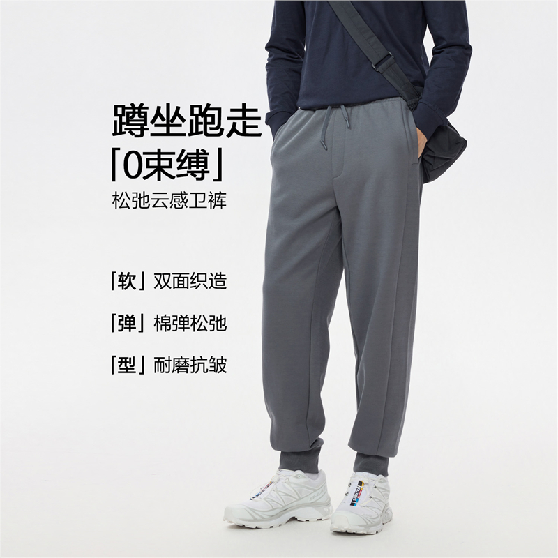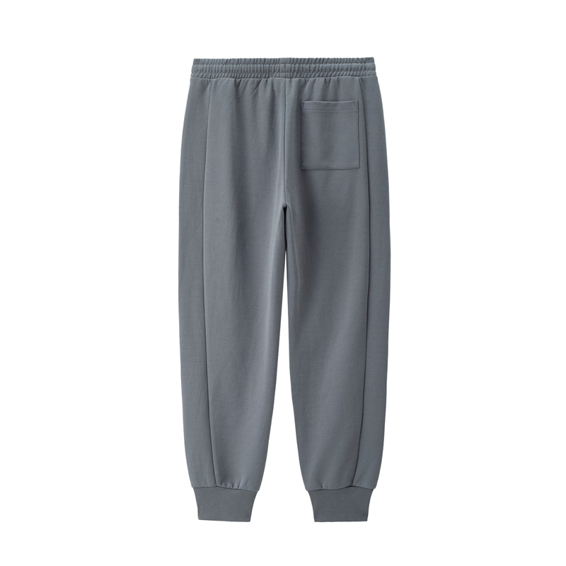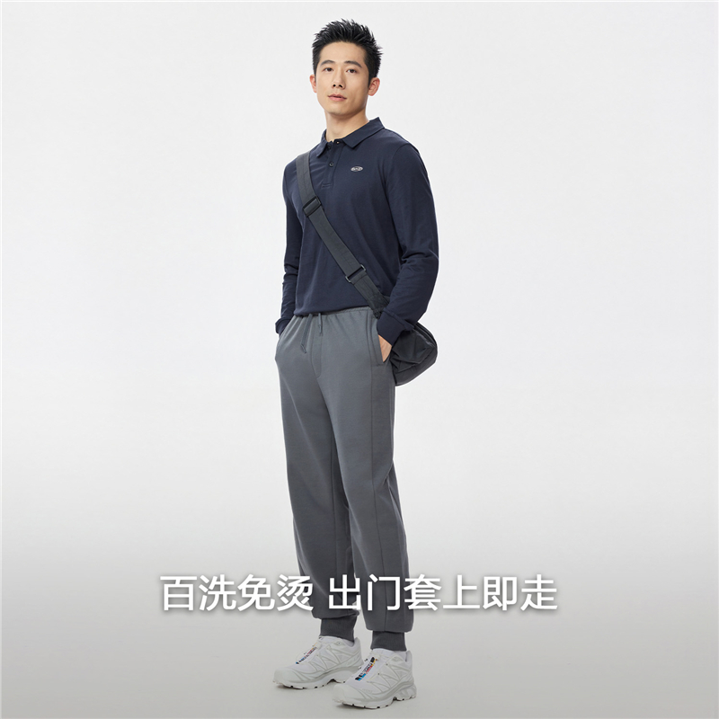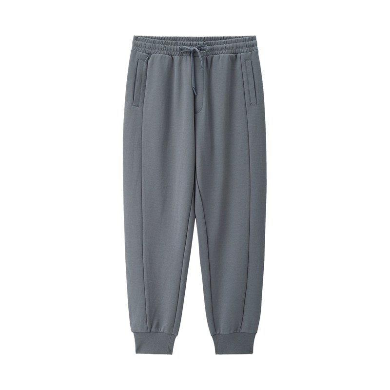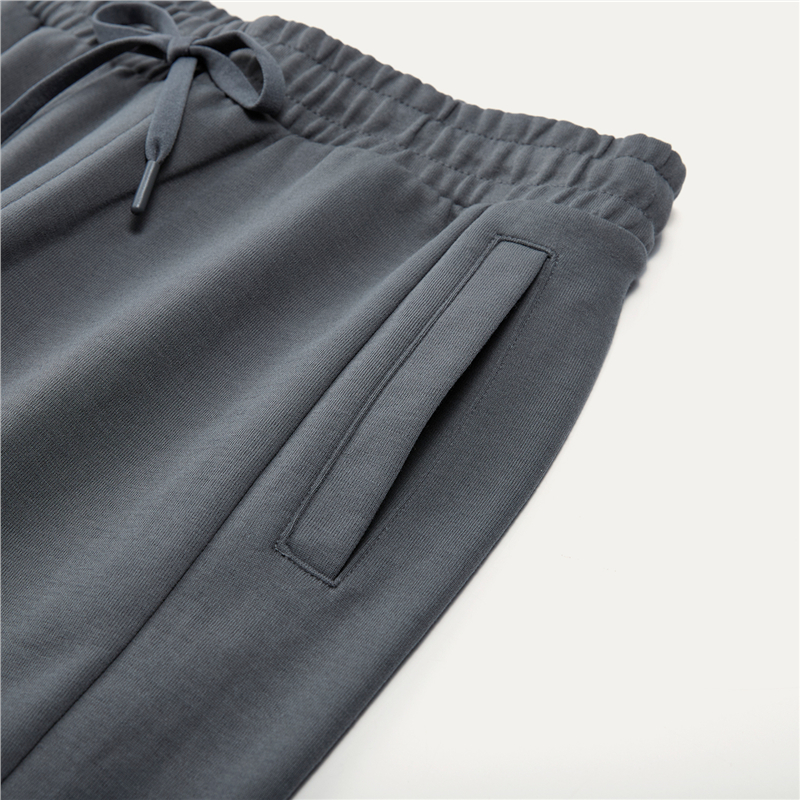 雙面布面料,挺括細膩;鬆緊腰頭,加設抽繩,舒適易穿;破骨設計,線條流暢,增添立體感。