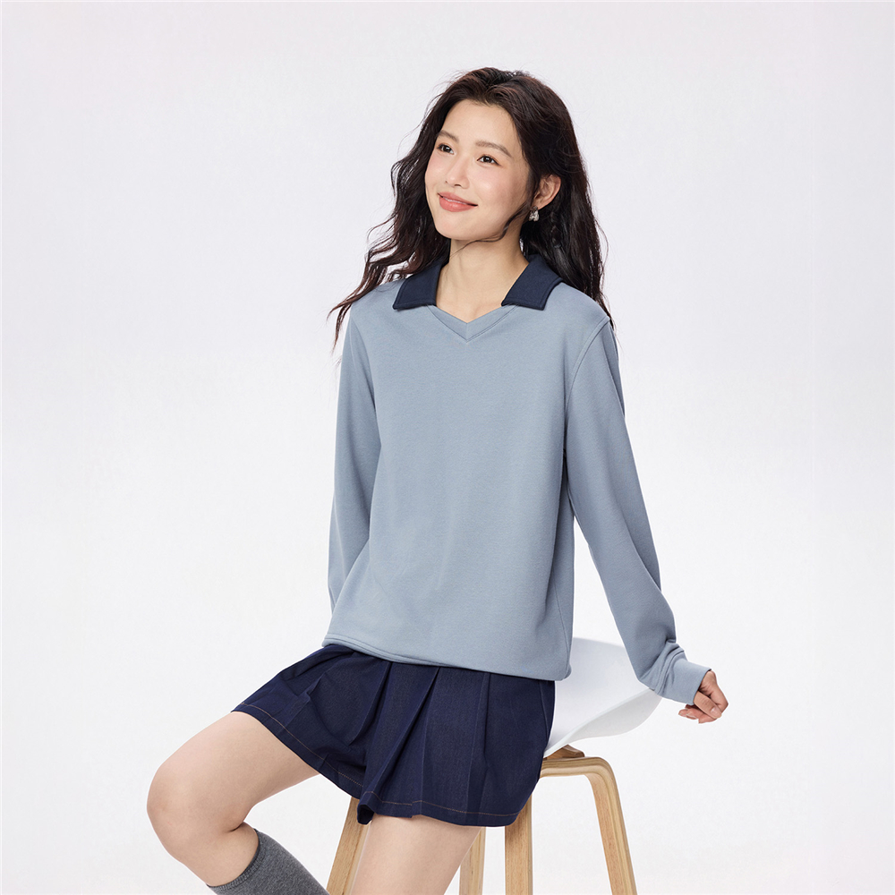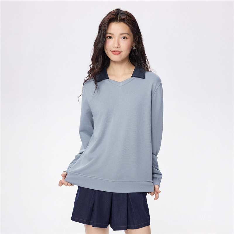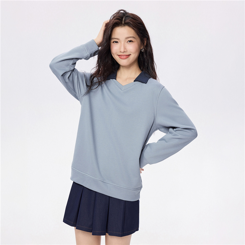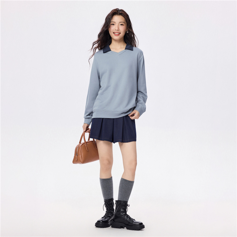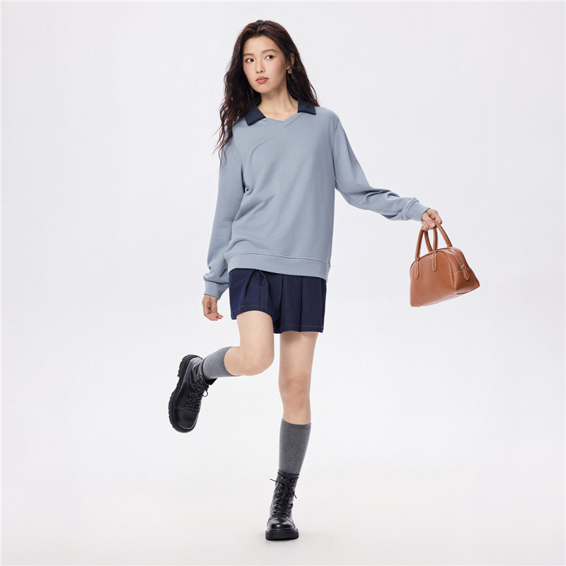【網上獨家】女裝撞色V字翻領針織套頭衛衣