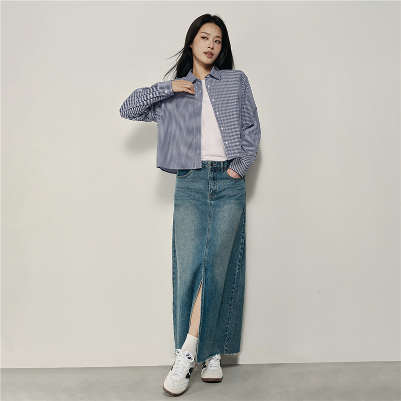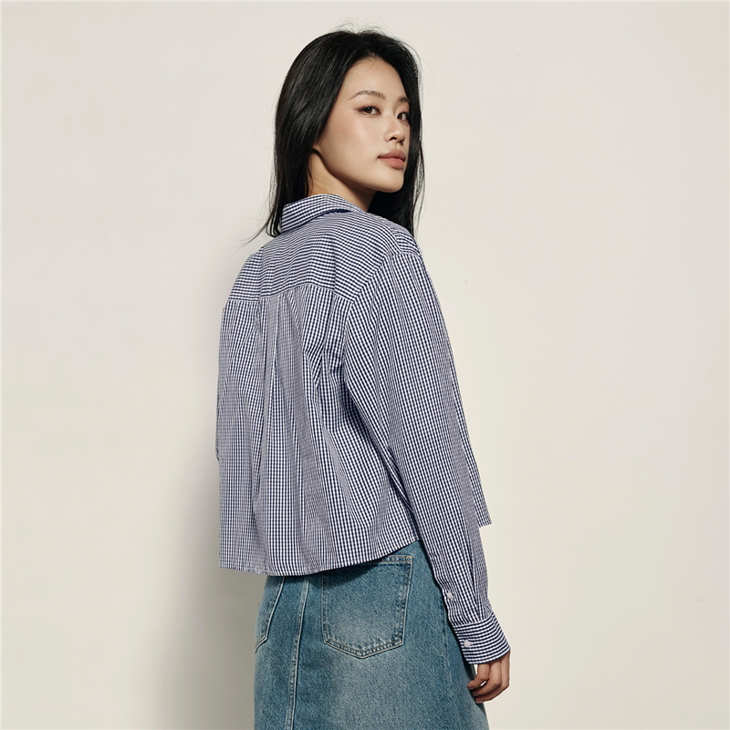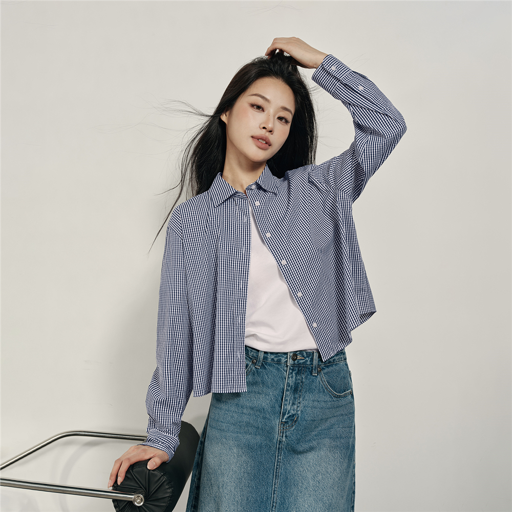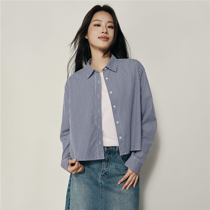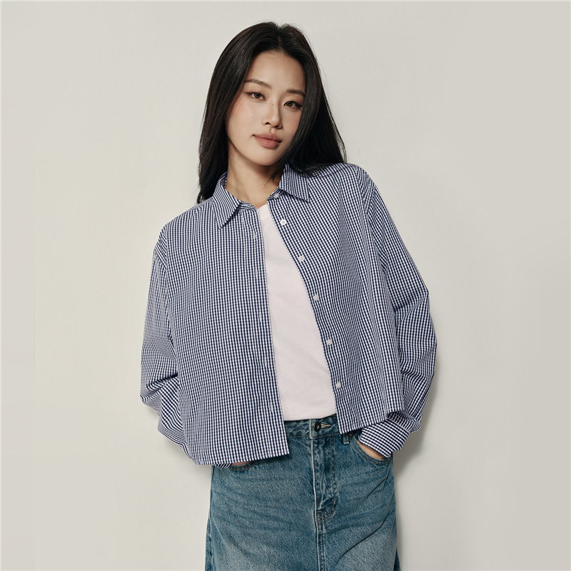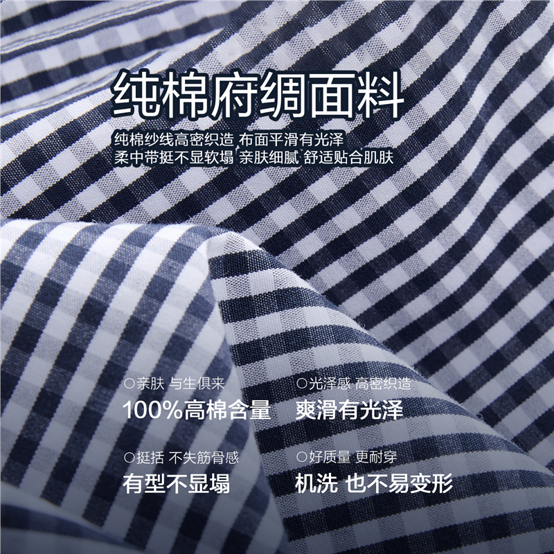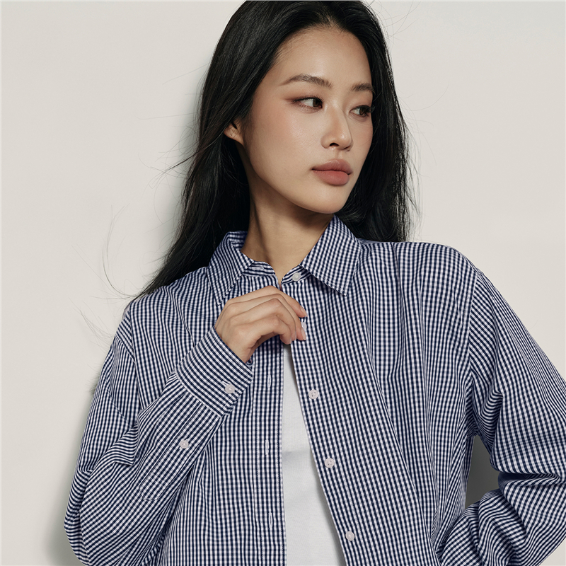 韓國同款 100%棉格紋布,舒適耐穿 經典襯衫領,工整美觀,幹淨利落 紐扣門襟,結實牢固,穿脫方便。