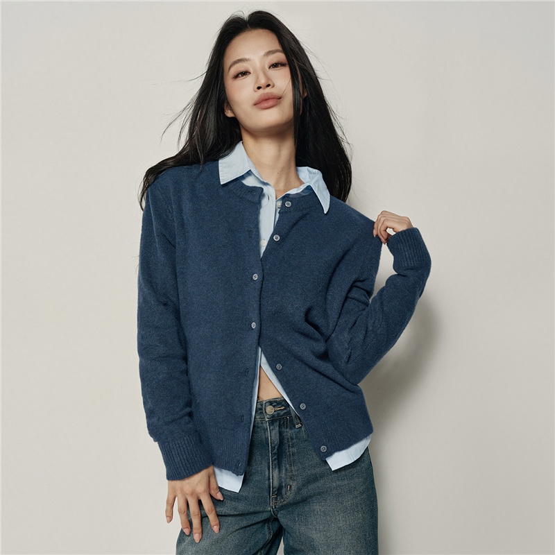 韓國同款 羊毛混紡面料,質感細膩 羅紋圓領,不易變形,易穿易搭 紐扣門襟,結實牢固,穿脫方便。