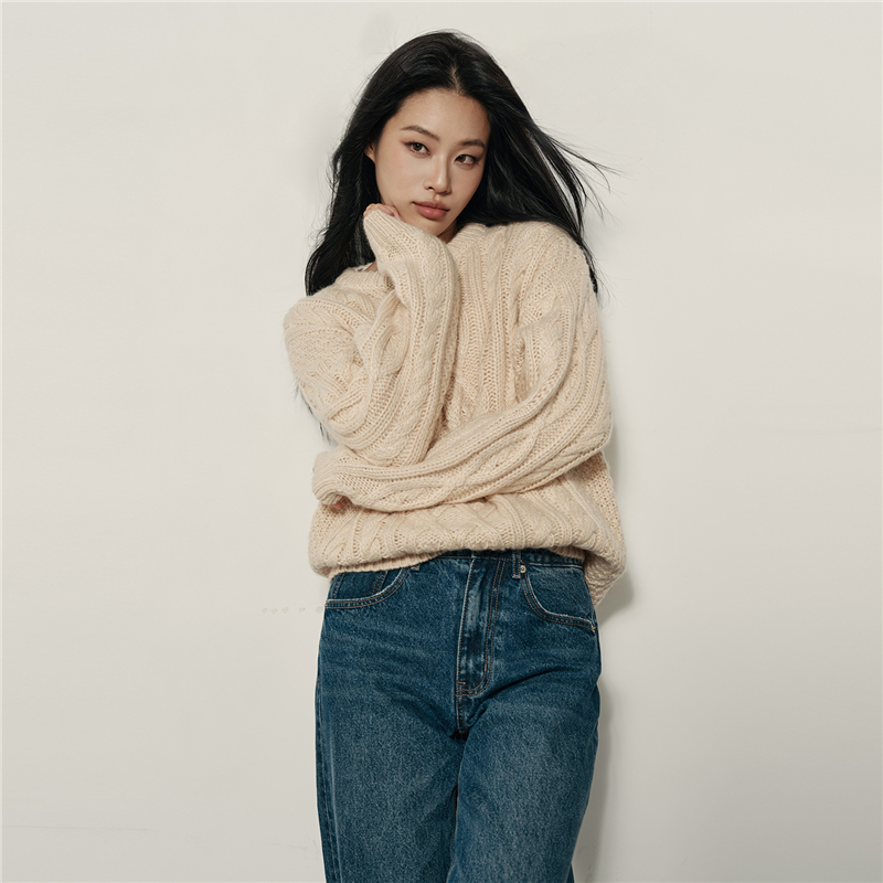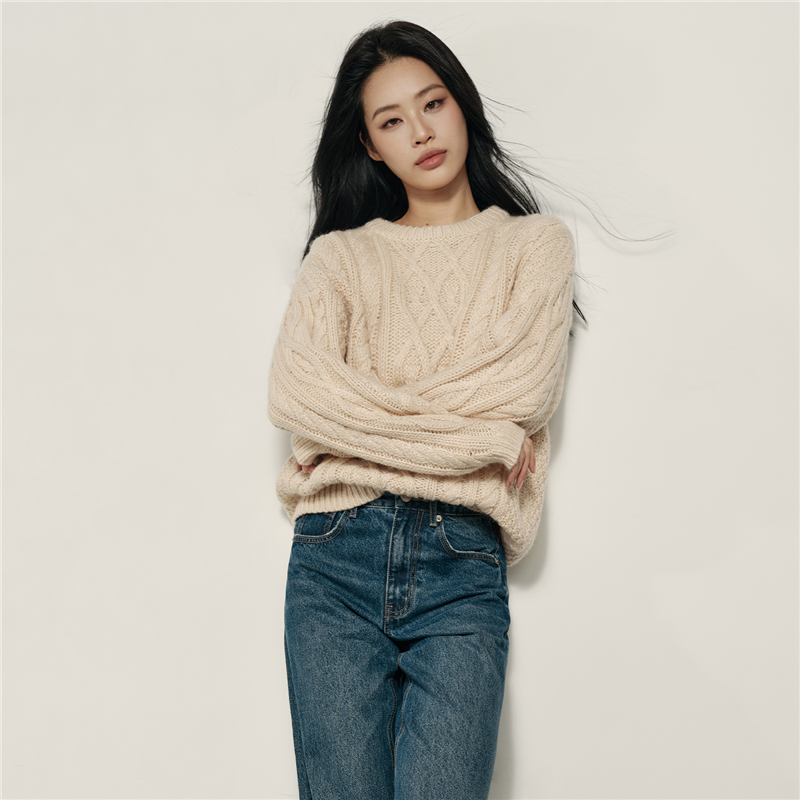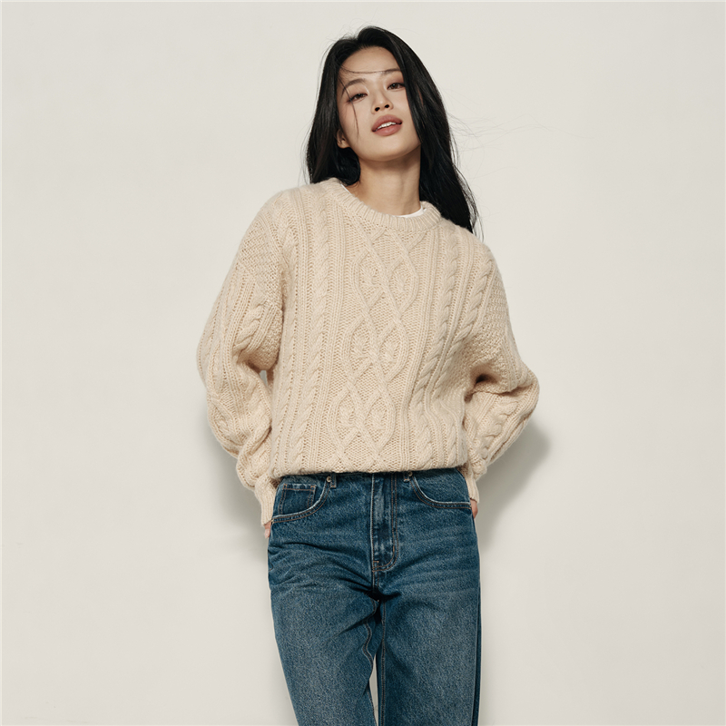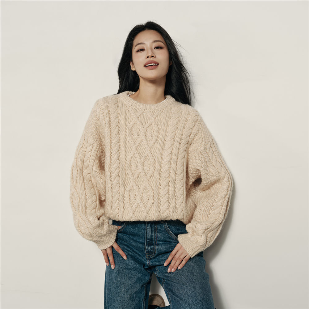 女裝Korea Collection 絞花圓領套頭針織衫
