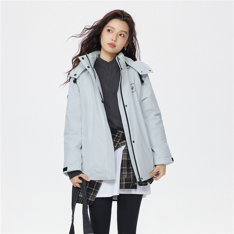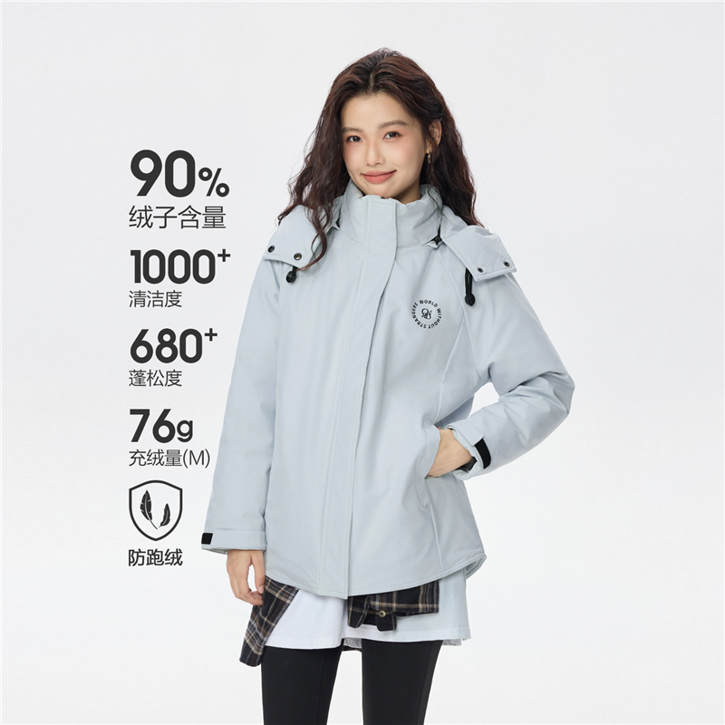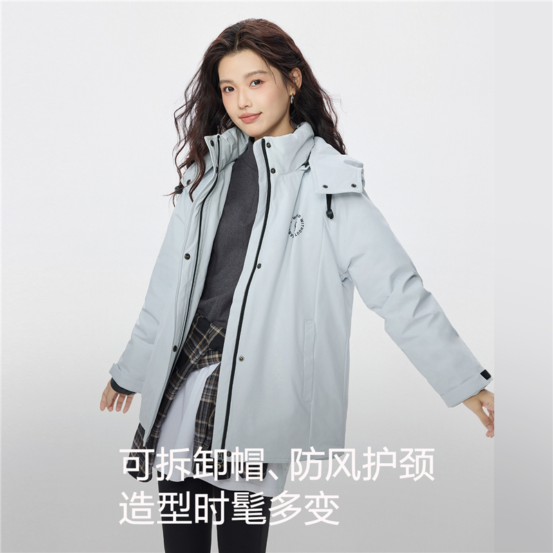 br>溫馨提示:此款面料成分、裏料成分、其他輔料填充物爲100%聚酯纖維。 90%鴨絨,充絨均勻,厚實溫暖;含特氟龍塗層,有效防潑水、防油、防汙;可拆卸帽,加設抽繩,防風護項;字母刺繡,工藝精美,時尚吸睛。