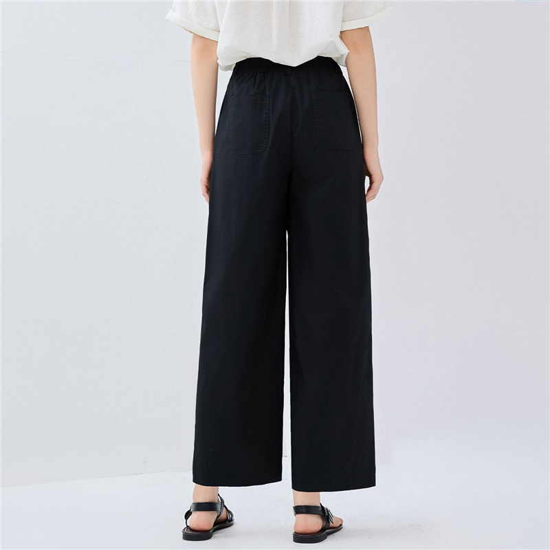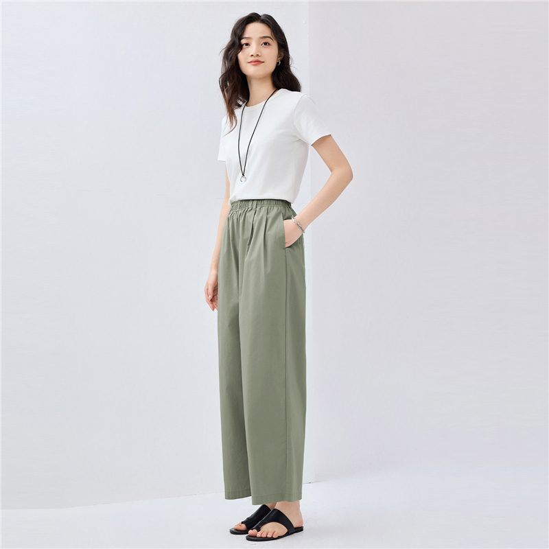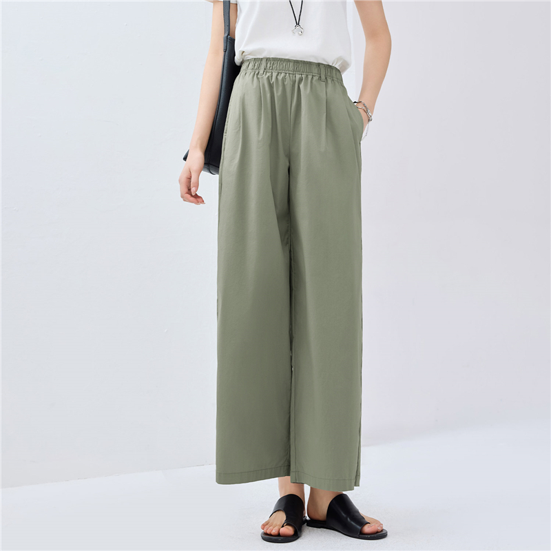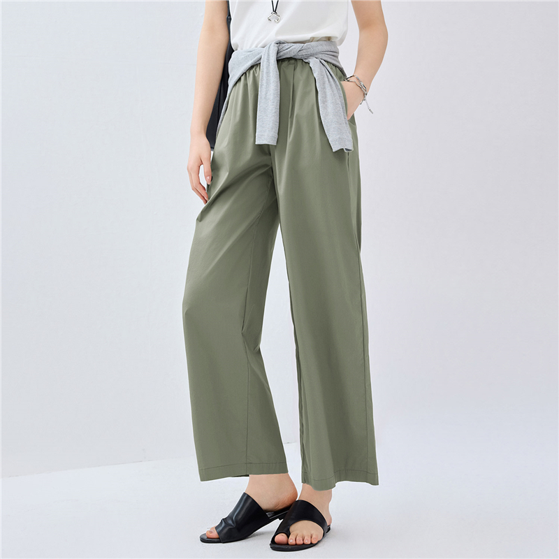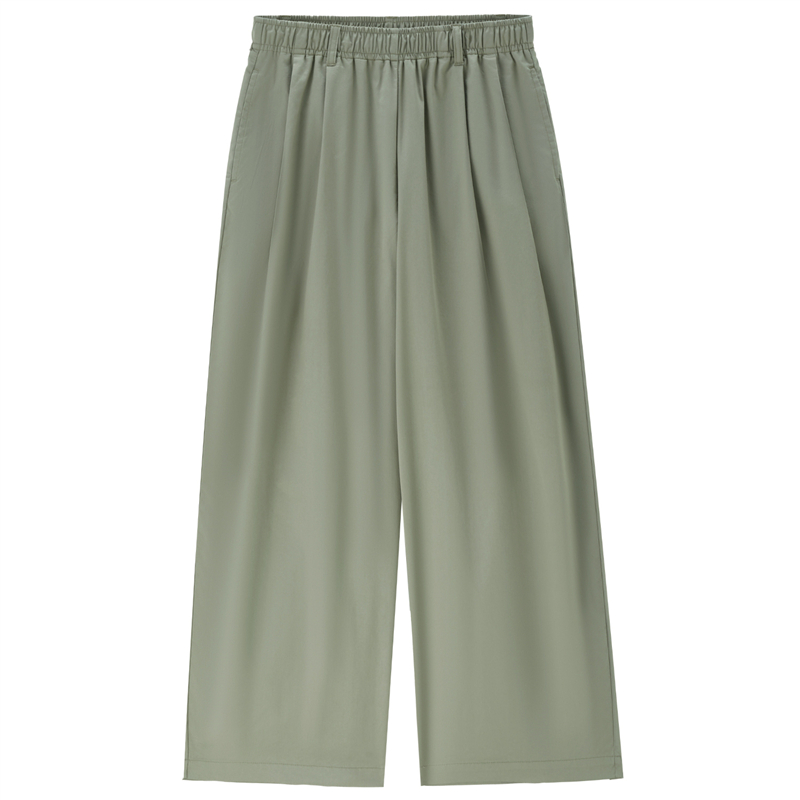 【網上獨家】女裝涼感壓褶鬆緊腰闊腿九分褲