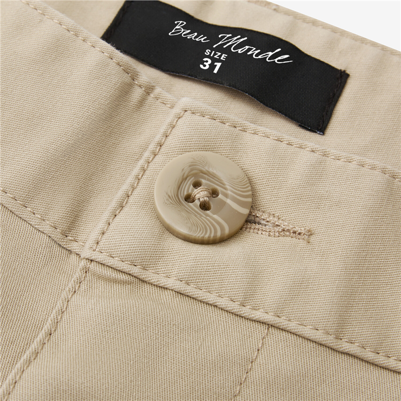 5.9盎司薄彈力棉,合體長褲,正常腰頭, 後袋紐扣,YKK拉鏈