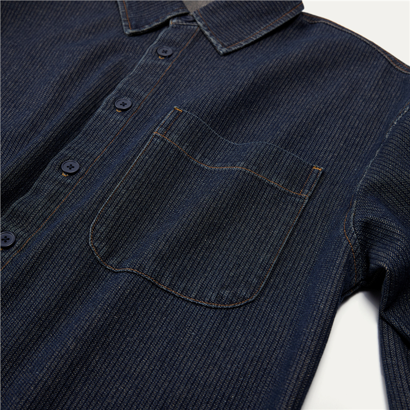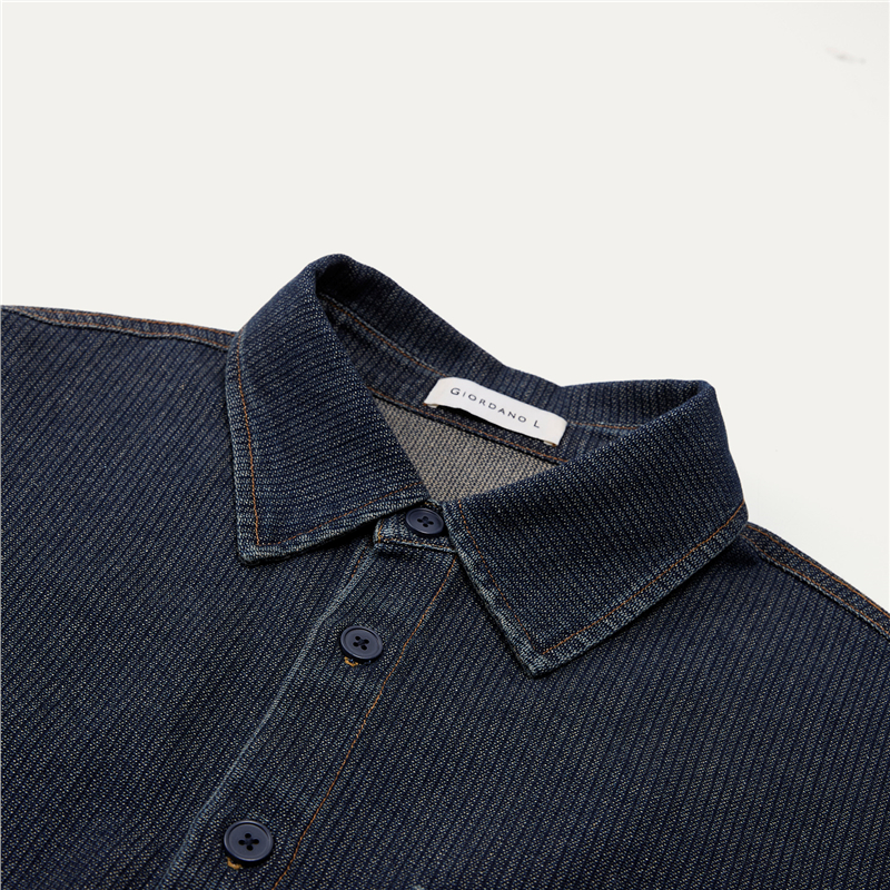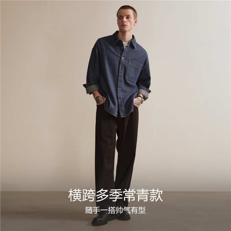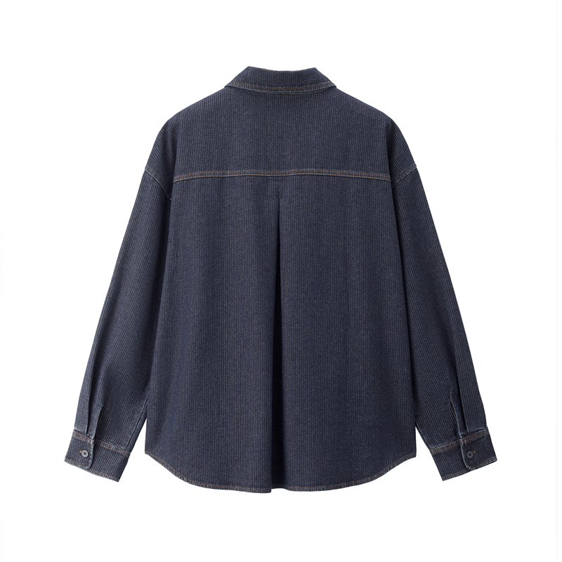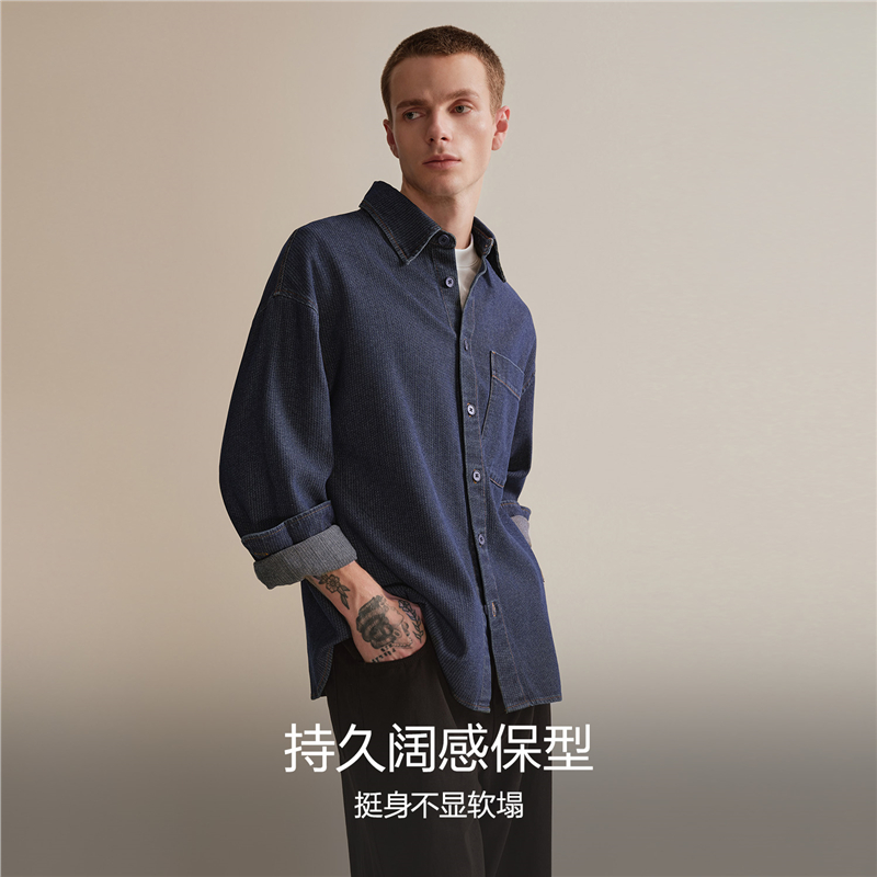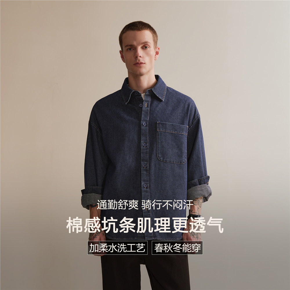 【網上獨家】男裝洗水坑條單口袋寬鬆長袖牛仔襯衫
